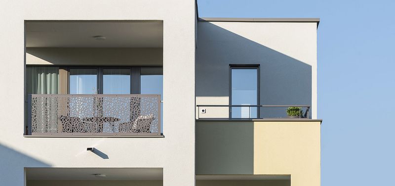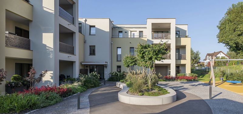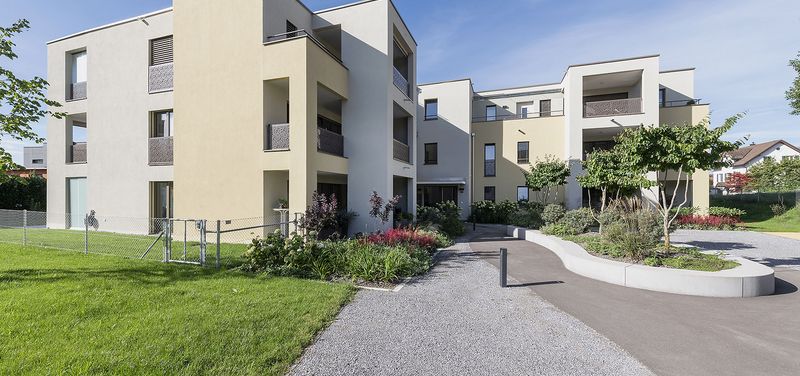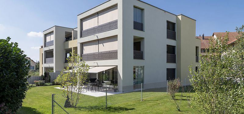 Das neue Mehrfamilienhaus befindet sich am Rand des Dorfzentrums von Russikon. Dem winkelförmigen Neubau sind vor den gesamten, besonnten Hauptfassaden durchgehend unterschiedlich breite Balkonzonen vorgelagert. Es entsteht dadurch ein kubisches, durch die verschiedenen Vor- und Rücksprünge gegliedertes Erscheinungsbild. Das Gebäudevolumen erhält dadurch drei Fassadenebenen, welche wie beim Tetris mit fehlenden Stücken gefüllt werden könnten.